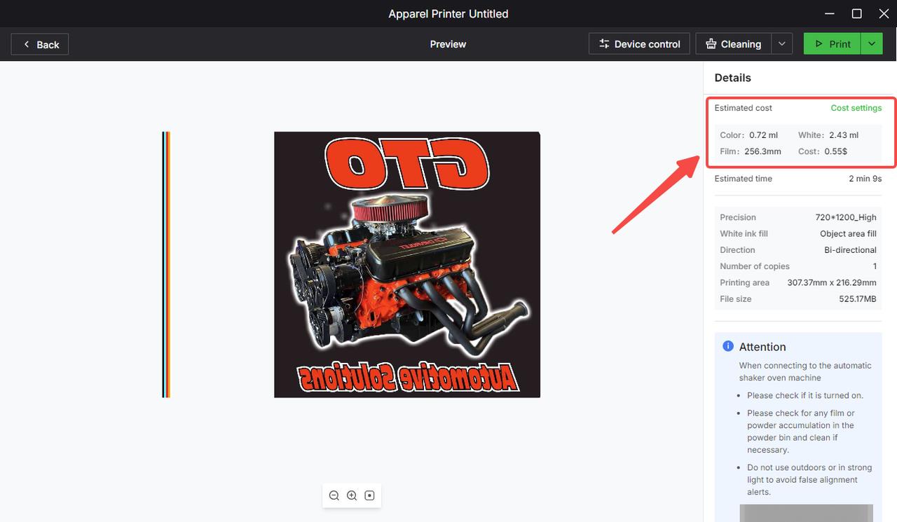This is more accurate way to know your ink consumption/ cost which is a great feature you get with xTool Printers.For precise calculations based on your specific designs, use the Ink Estimated Cost feature in xTool Creative Space (XCS) software (see image below).