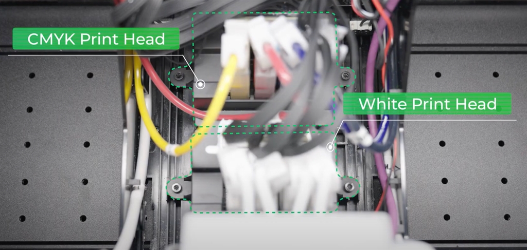 - Outer Printhead (front position): Configured exclusively for White ink.